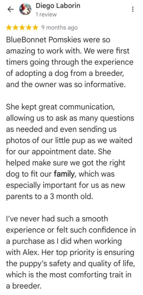 If you're a BBP family member and would like to share your feedback with the world about your experience you've had here with us, we would love to hear it! Please reach out to us at bbpomskies@gmail.com or leave a review on our Google page found HERE or our Facebook page found HERE.